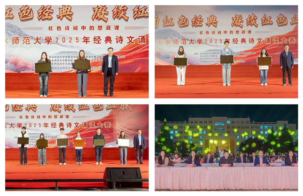大赛在电子信息与电气工程学院师生深情演绎的《我用残损的手掌》中拉开帷幕,同观众一起重温了那段永不磨灭的民族记忆。文学与文化传播学院的《满江红》激荡起穿越千年的爱国热血;土木工程学院的《党的赞歌》深情表达了对党的赤诚信仰;外国语学院的《我爱这片土地》倾诉了对家国的眷恋;体育运动与健康学院的《如果信仰有颜色》用青春之声描绘了信仰的斑斓画卷;音乐舞蹈学院的《如果我生活在那个年代》以时空对话的形式探寻初心与使命;卫生健康学院的《清平乐·六盘山》再现了“不到长城非好汉”的革命豪情;历史文化学院的《浪淘沙·北戴河》在历史长河中采撷壮丽诗篇;教师教育学院的《万疆》描绘出了山河无恙的盛世图景;马克思主义学院《红色的十月》以炽热情怀点燃革命薪火;数学与统计学院的《中国红》再次诠释了信仰的鲜明底色;化学工程与技术学院的《囚歌》彰显了革命者宁折不弯的铮铮铁骨;资源与环境工程学院的《与儿书》展现烽火岁月中的铁骨柔情;机电与汽车工程学院的《我骄傲我是中国人》激荡起磅礴的民族自豪;商学院的《百年交响》谱写了中国共产党百年征程的壮丽史诗;美术与艺术设计学院的《我爱你中国》将山河之恋融入声声诵读;生物工程与技术学院则以青春之音展现了中华少年的蓬勃朝气。