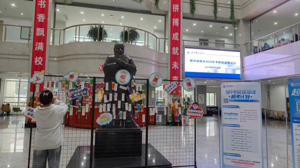 为帮助考研学子缓解压力,提供资源支持与精神鼓励,9月18日上午,图书馆在学校图书馆二楼大厅举办“考研送温暖”活动,为考研学子送上专属“加油包”,营造浓厚的备考关怀氛围。