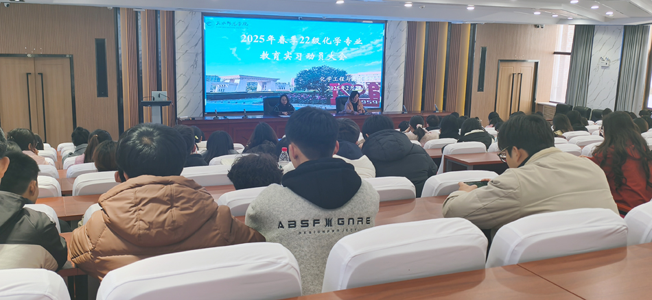 为扎实推进2025年春季学期师范生教育实习工作顺利开展,高质量完成2022级化学专业本科生教育实习工作,2月27日下午,化学工程与技术学院在1号报告厅召开2022级化学专业本科生教育实习动员大会。学院领导、实习带队教师以及2022级化学专业全体实习生等共160余人参加。