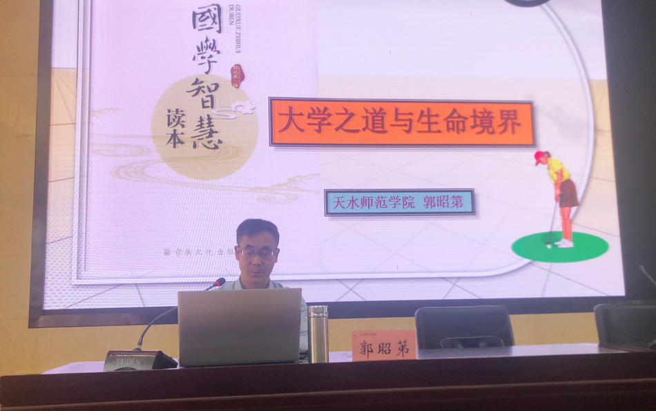 5月23日下午,学校在二号报告厅举办“敬畏经典 敬仰大师 敬重创新”首届教学文化节之敬畏经典模块专题报告。中国语言文学首批全国高校黄大年式教师团队、汉语言文学国家级一流本科专业建设点、文学概论国家级一流本科课程负责人、教务处处长、文学与文化传播学院二级教授郭昭第作了题为“大学之道与生命境界”的专题报告。各学院近两年新入职教师、本科生和研究生等300余人参加了报告会。