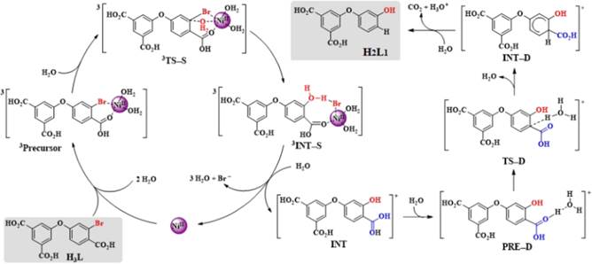图1 NiII催化Br−OH原位转化与分步脱羧的反应机理