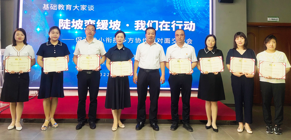 圆桌会议活动中,教师教育学院张悦红副教授及家长代表王亚斌就家长们最焦虑、最担心的问题向来宾们提问。天水市罗玉中学校长范提升、天水市解放路第一小学副校长张银军从学校管理者的角度对幼儿园与小学的不同职能给出自己的见解。天水市建设路第二小学数学教师王亚平、天水市新华门小学英语教师王文韵、天水市公园小学数学教师史爱霞分别从各自学科角度就零起点入学、小学的弹性与刚性、“双减”政策下教师面临的新挑战等作了精彩的回应。交流会最后,教师教育学院院长杨学良为各位来宾颁发了基础教育主讲人聘书,为校地合作奠定良好的基础。