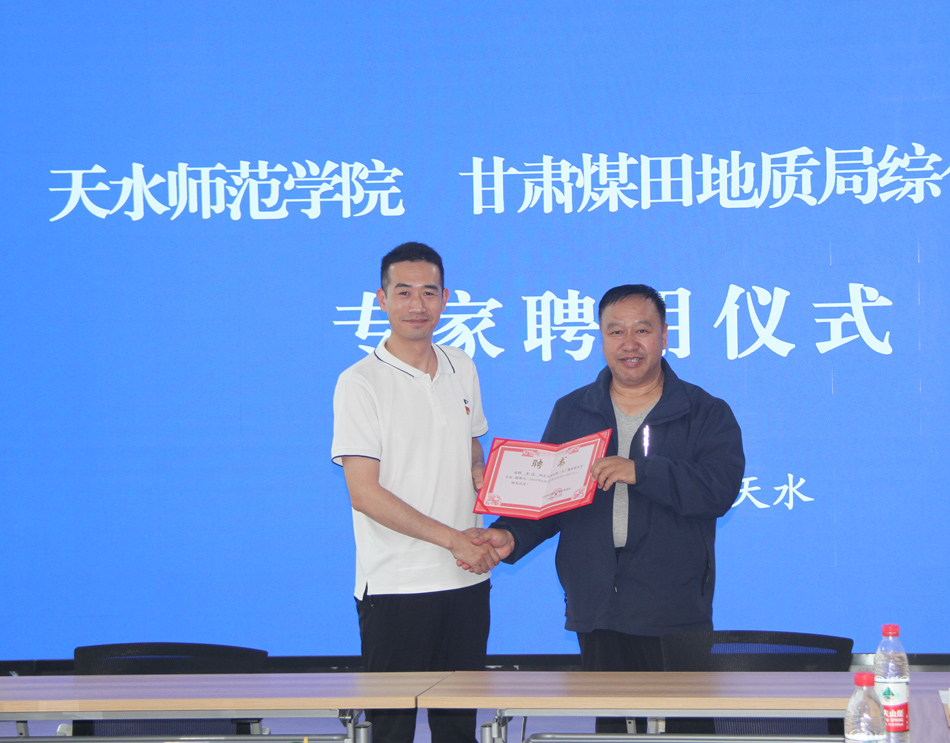 聘用仪式上,双方领导介绍了本单位基本情况、近期科研与业务开展情况,双方对前期开展的各项合作表示了积极肯定。甘肃煤田地质局综合普查队领导为南岭、王莉霞、张红丽、李伟、张慧荣、胡鹏程等6名教师颁发了项目技术专家的聘用证书。