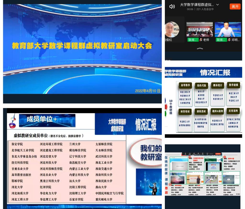 数学课程群全国仅西安交通大学、合肥工业大学、国防科技大学、华北理工大学四所高校牵头成立了国家级虚拟教研室,教育部数学课程群虚拟教研室为其中之一,现有高等数学、线性代数、概率统计、数学建模、计算方法、师资培训、课程思政、题库案例、应用案例、资源教材10个教研组。