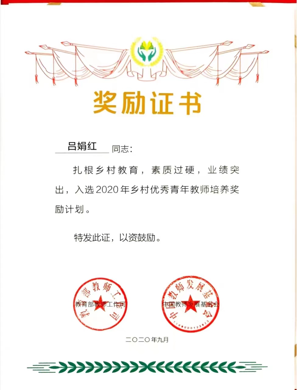 ——记入选教育部教师工作司、中国教师发展基金会2020年乡村优秀青年教师