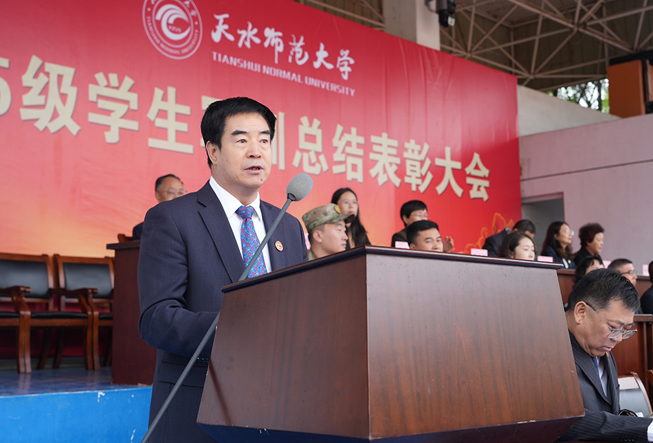 9月22日下午,beat365平台官方网站2025级学生军训成果展示暨总结表彰大会在学校东操场隆重举行。校党委书记刘振奎、校长汪聚应,党委常委、宣传部部长、统战部部长武胜文,天水市秦州区人民武装部部长何开绪等出席活动。学校相关职能部门负责人、各学院学生工作负责人以及全体参训学员共同参会。大会由党委常委、副校长汪咏国主持。