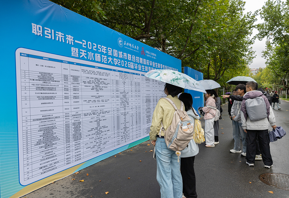 10月16日,职引未来——2025年全国城市联合招聘高校毕业生秋季专场甘肃系列活动暨beat365平台官方网站2026届毕业生秋季双选会在学校体育馆举办。本次双选会得到甘肃省人力资源市场、天水市人力资源和社会保障局的大力支持。校党委书记刘振奎,党委常委、副校长汪咏国出席招聘活动。招生就业处负责人、各学院就业工作领导小组组长、分管就业工作领导、辅导员及2026届毕业生等参加双选会。